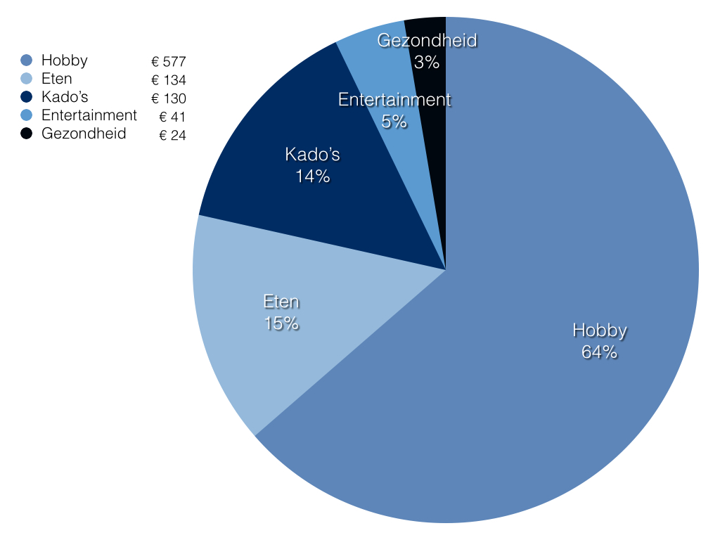 Ik houd al mijn uitgaven nauwgezet bij elke maand, zodat ik precies weet hoeveel ik uitgeef en waaraan precies. Zo zal ik kijken of ik mijn uitgaven in categorieën kan opdelen en of ik erachter kan komen waar het grootste gat in mijn hand zit. Ik heb al wel zo’n vermoeden dat mijn hobby bovenaan het lijstje zal komen te staan. De dure apparaten die ik aanschaf voor mijn hobby zijn grote kosten die niet essentieel zijn in de strikte zin van het woord. Eigenlijk zou ik hier niet naar moeten kijken, omdat ik normaliter niet elke maand een duur apparaat koop, maar ik moet opbiechten dat het de afgelopen maanden eigenlijk wel elke maand is voorgekomen. Als eenverdiener hoef ik natuurlijk geen verantwoording af te leggen over mijn uitgaven.